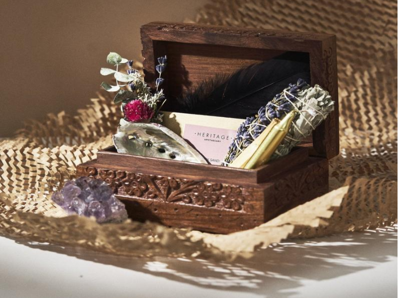 At Heritage Apothecary you will find candleholders, smudge sprays, charging plates, perfume, incense, crystals, smudge kits, and more!